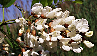 Die aus Nordamerika stammende Robinie (Robinia pseudoacacia): Als junge Pflanze schlägt sie mit ihren bis zu 3 cm langen, dolchartigen Dornen alles in die Flucht, was an ihr knabbern könnte. Später, wenn sie unangreifbar geworden ist, streckt sie die Waffen, blüht und gedeiht und entwickelt 30 Jahre haltbare Samen, die nur auf genügend Licht warten, um sich erneut mit spitzen Dornen den Weg zu ebnen. Ein Unbaum par excellence.